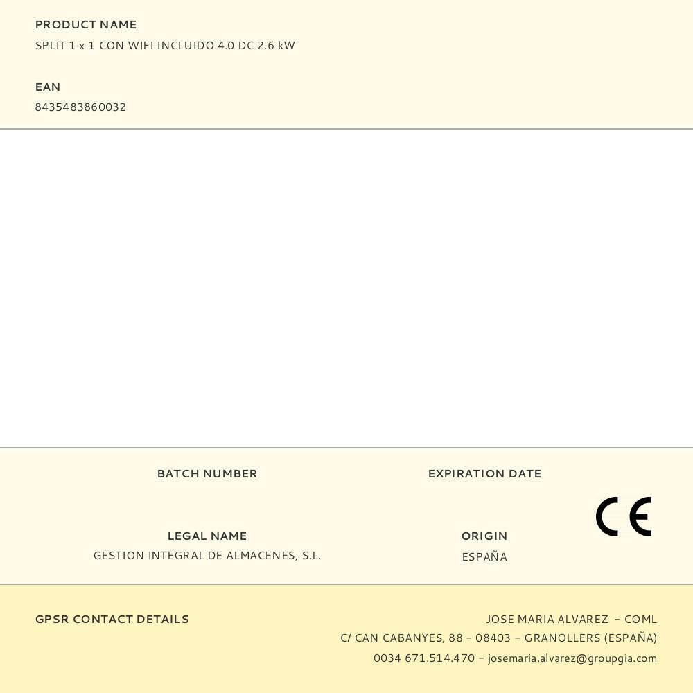 Split 1 X 1 Con Wifi Incluido 4.0 Dc 2.6 Kw