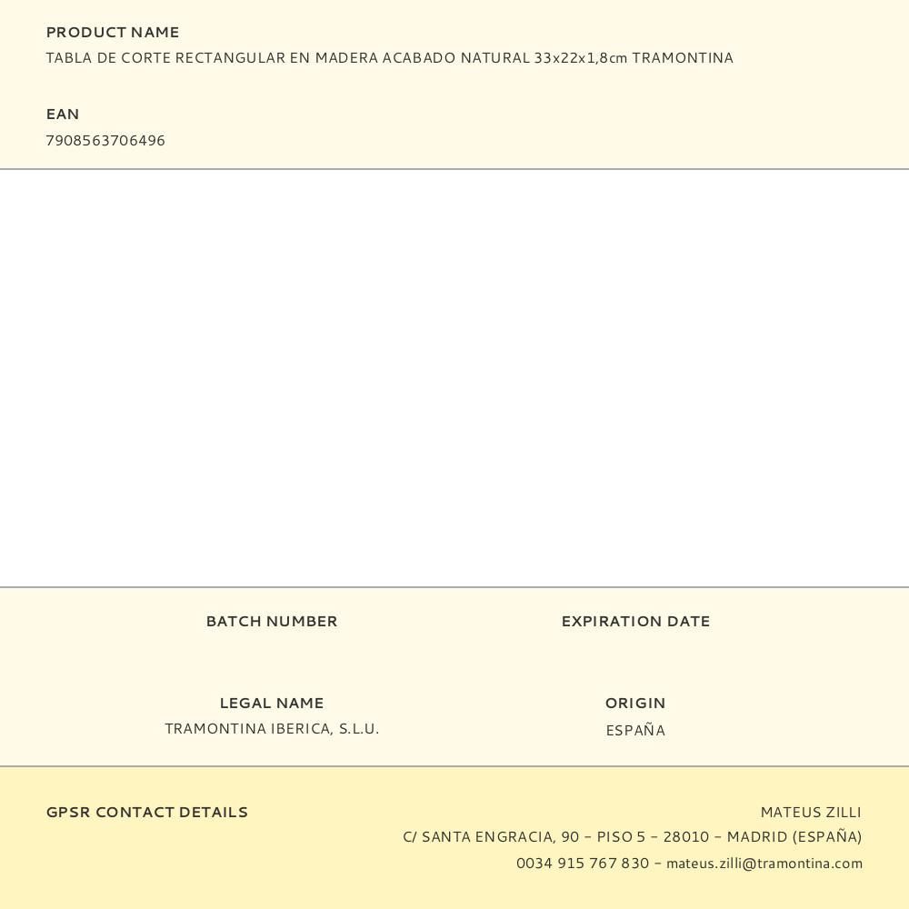 Tabla De Corte De Madera Acabado Natural 34 X 23,3 X 1,8 Cm