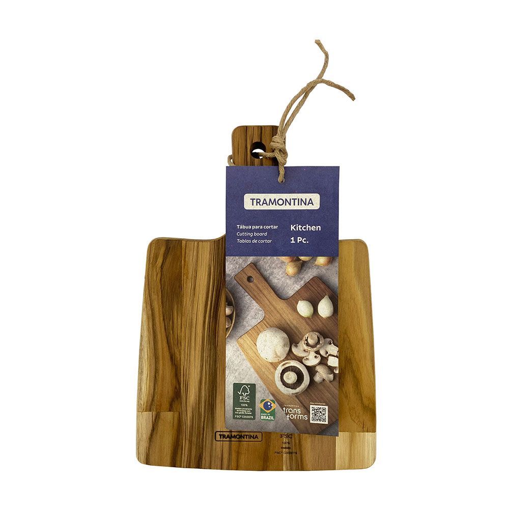 Tabla De Cortar Rectangular En Madera Teca Fsc® Con Mango Integrado, Con Acabado Con Aceite Mineral Que Protege La Superficie, Reduce La Absorción De Humedad Y Facilita La Limpieza, Con Tratamiento Antimicrobiano, Color Natural, Elemento Funcional Y Decorativo, Dimensiones: 19,5 X 18,5 X 1,8 Cm, Mango 9 Cm