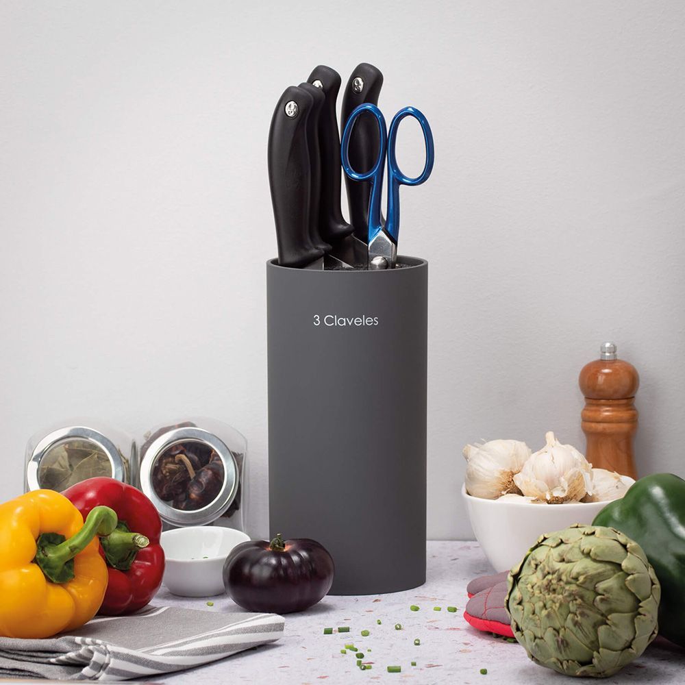 Taco Universal Gris, Para Cuchillos De Hasta 20 Cm De Longitud De Hoja, Interior De Fibras Lavables, Desmonatble, Apto Para El Lavavajillas, Cuchillos No Incluidos, Dimensiones Ø11 X 22 Cm