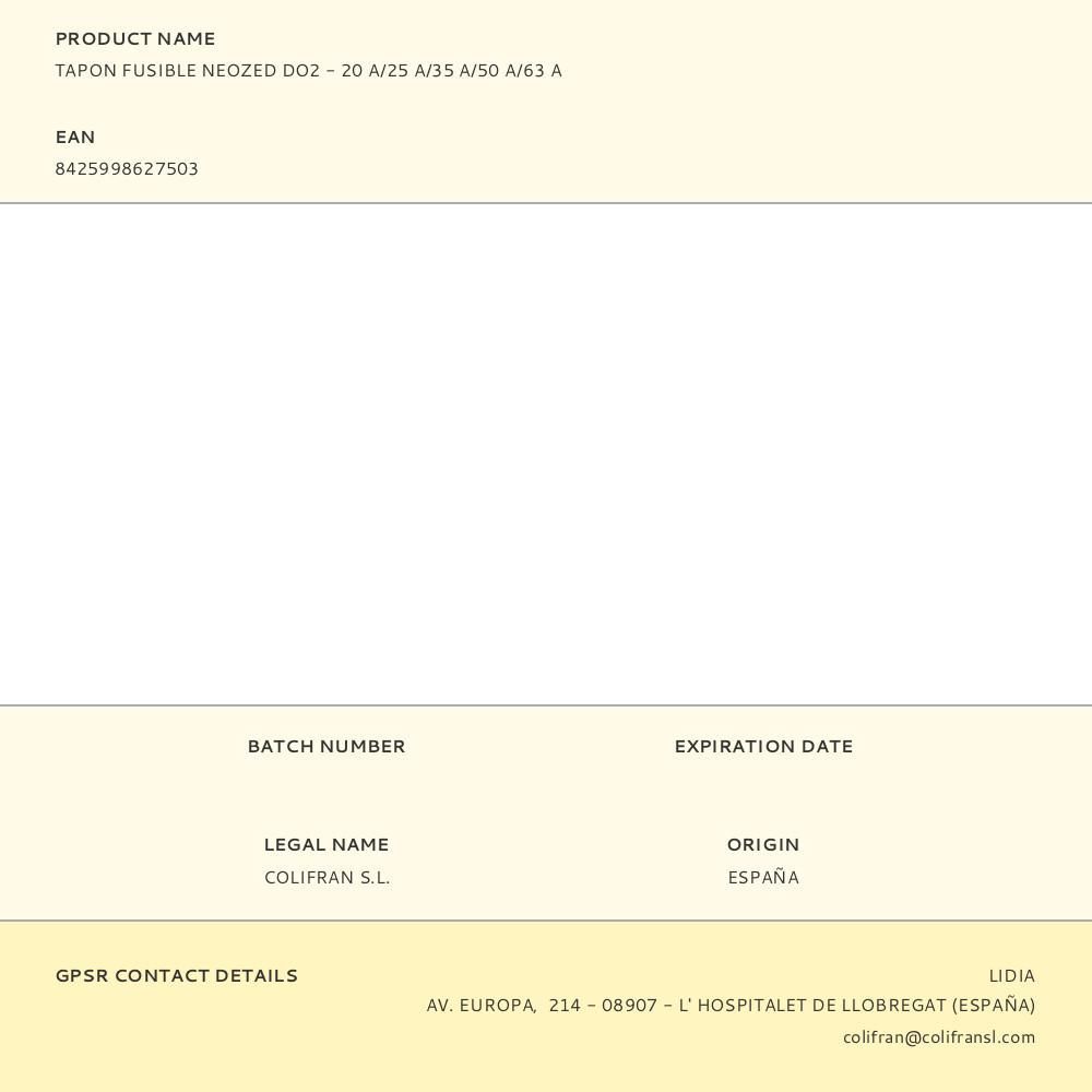 Tapon Fusible Neozed Do2 - 20A/25A/35A/50A/63A Rosca Ø17Mm Exterior