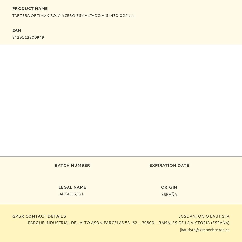 Tartera Acero Esmaltado Aisi 430 Optimax Roja Ø24Cm