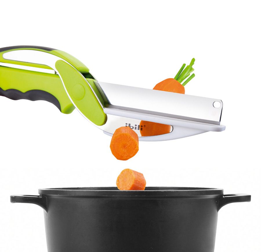 Tijera Duo (Tabla + cuchillo).Permite cortar y trocear con total comodidad vertiendo el alimento directamente al recipiente. Gracias a su innovador diseño, integra cuchillo y tabla en un mismo utensilio, lo que resulta mucho más práctico a la hora de cocinar.Además, su bloqueo de seguridad evita posibles accidentes, ya que lo mantiene cerrado mientras no se está utilizando.INOX + PLASTIC