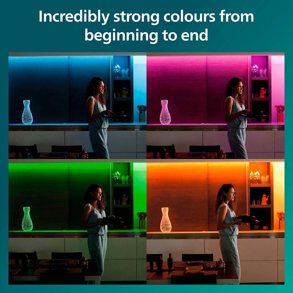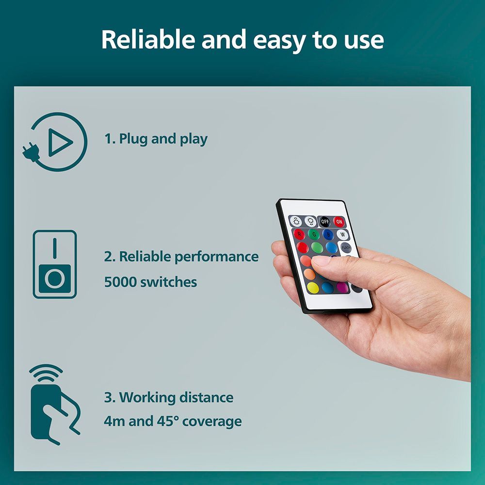 Tira Led Rgb Adhesiva Con Mando A Distancia, 16 Colores, Efectos De Luz Dinámicos, Se Puede Cortar Para Ajustar El Tamaño, Protección: Ip20, Vida Útil: 20.000 H, Entrada 220 - 240 V Ac 50-60 Hz 12 W, Salida 12 V Dc 12 W, Dimensiones 5 M