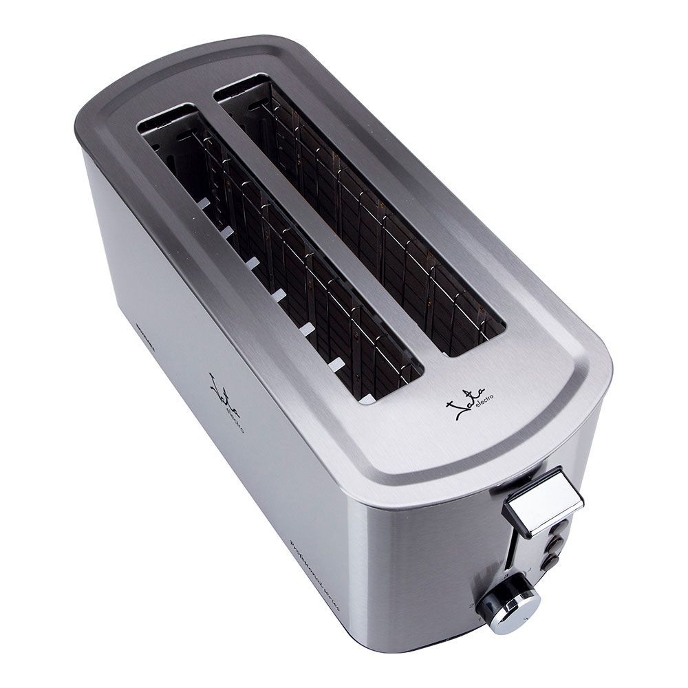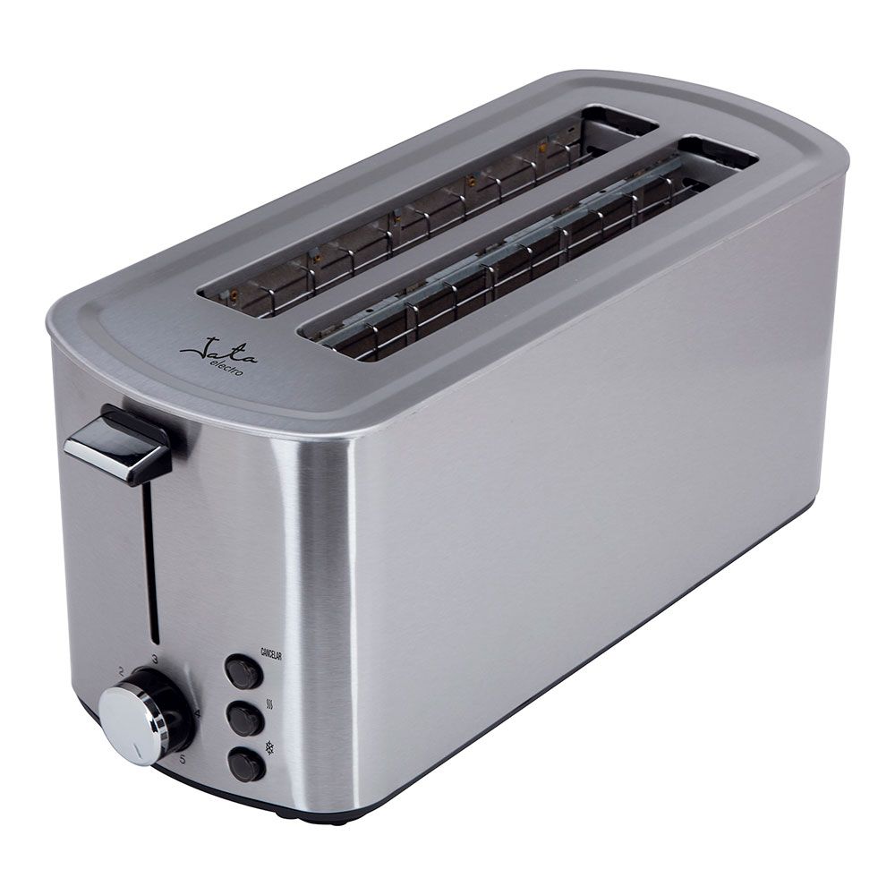 Tostador Con Cuerpo En Acero Inoxidable. Dos Ranuras De 40 X 255 Mm. Centrado Automático Del Pan. Selector Electrónico De Tostado. 5 Posiciones. 2 Funciones: Descongelación Y Mantenimiento De Calor. Pulsador De Parada Voluntaria. Bandeja Recogemigas. Indicadores Luminosos Y Recogecable. Voltaje 230 V. Potencia Max. 1.400 W