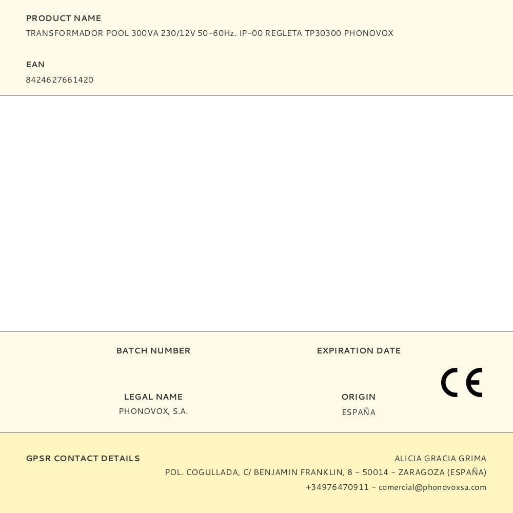 Transformador Pool 300Va 230/12V 50-60Hz. Ip-00 Regleta Tp30300