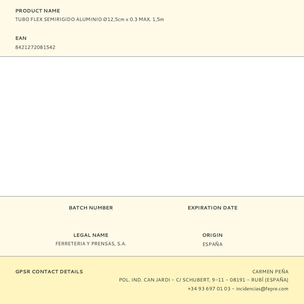 Tubo Flex Semirigido Aluminio Ø12,5Cm X 0.3 Max. 1,5M