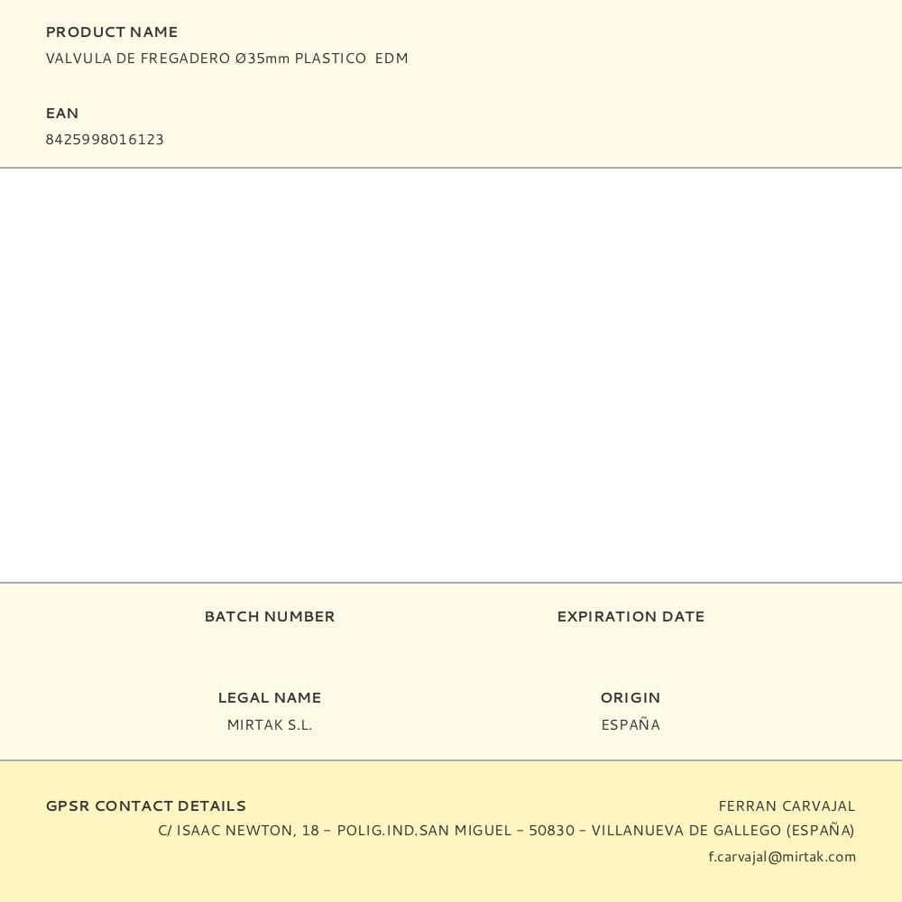 Valvula De Fregadero Ø35Mm Plastico Edm