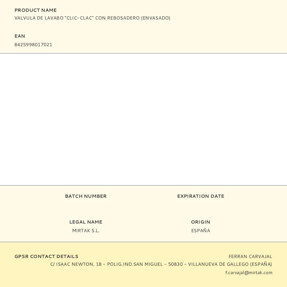 Valvula De Lavabo "Clic-Clac" Con Rebosadero (Envasado)