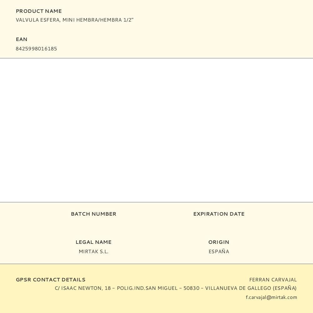 Valvula Esfera, Mini Hembra/Hembra 1/2"