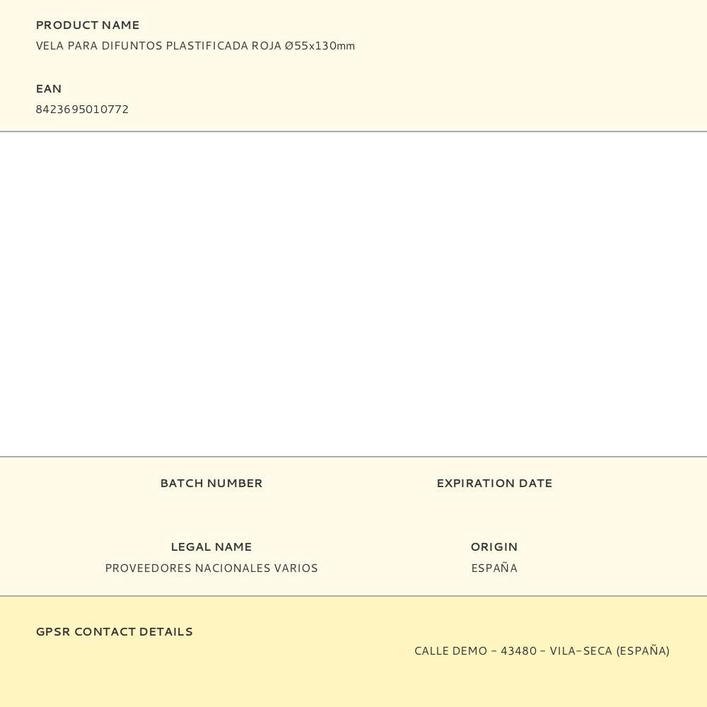 Vela Para Difuntos Plastificada Roja Ø55X130Mm