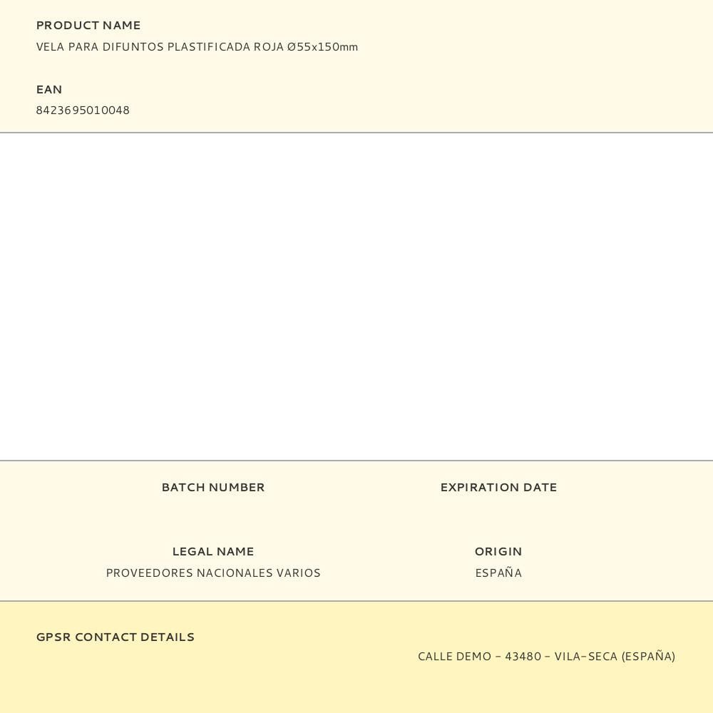 Vela Para Difuntos Plastificada Roja Ø55X150Mm