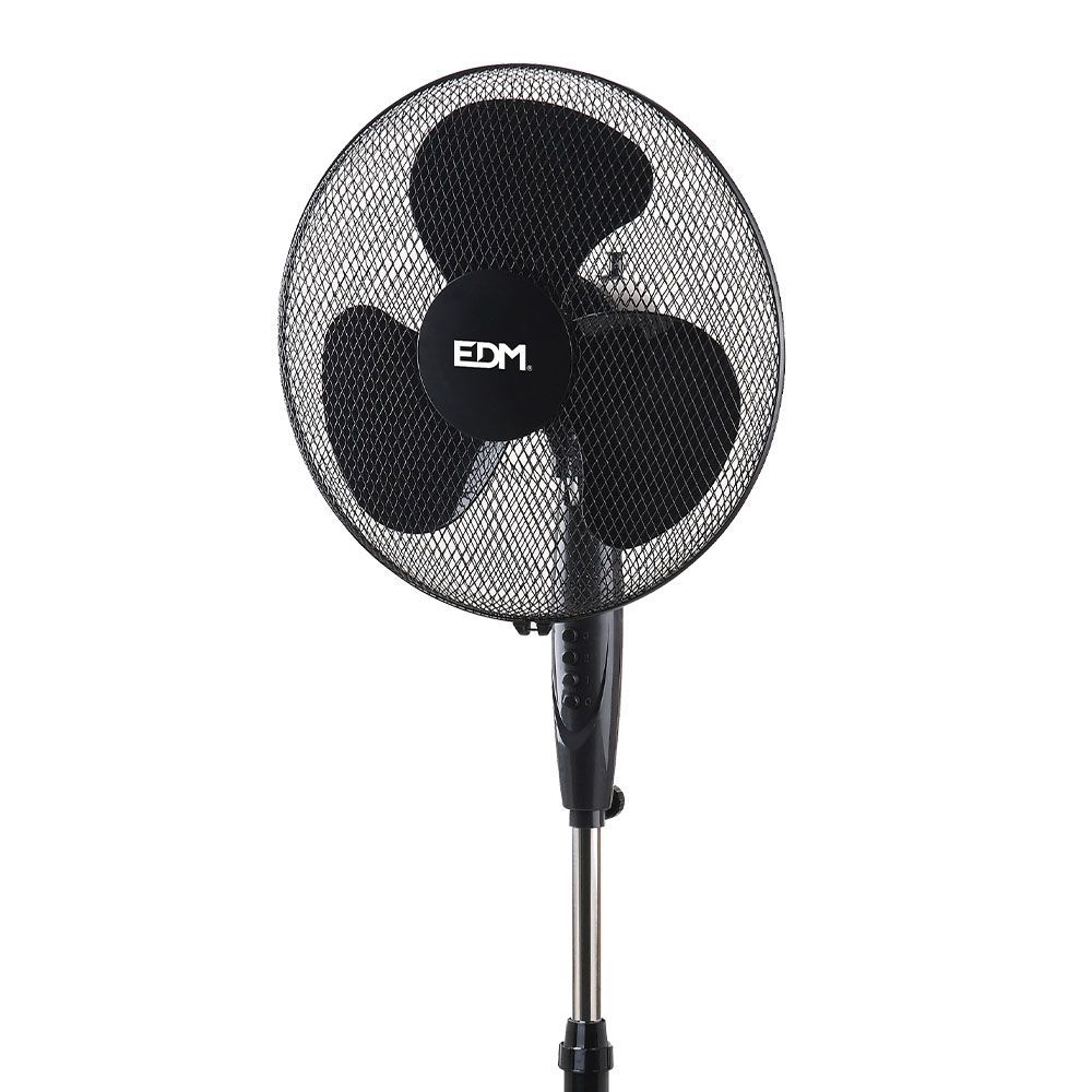 Ventilador De Pie Con Base Circular. Color Negro. Potencia: 45W Aspas: Ø40Cm Altura Regulable 110-130Cm 3 Velocidades. Rejilla De Seguridad. Cabezal E Inclinacion Ajustable Fijo/Oscilante Caudal De Aire 3000M³/H. 55,6 Db. 220-240V 50Hz 3 Aspas