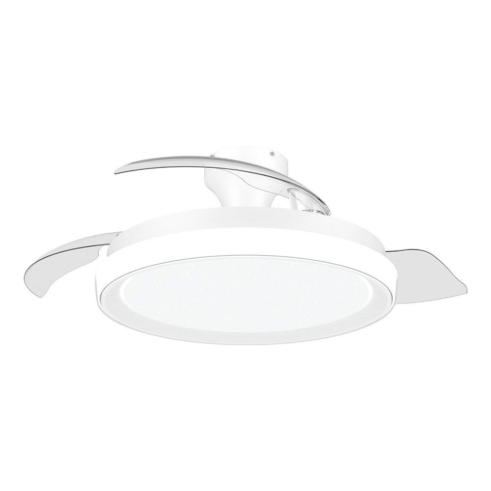 Ventilador De Techo Con Aspas Retráctiles, Led 3 Cct, Motor Dc 28 W + Led 35 W, Modelo Bliss, Blanco / Estrellado, Ø106 Cm