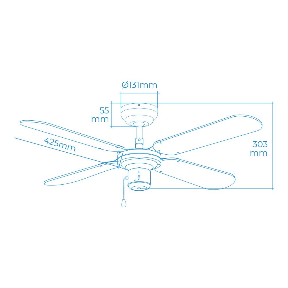 Ventilador De Techo Modelo Baltico. Color Blanco. Potencia: 50W Aspas: Ø102Cm (Diámetro) 3 Velocidades (Interruptor Tirador) Caudal De Aire 4381M³/H Ac-220-240V 50Hz 4 Aspas Reversibles Blanco/Haya Ip20 Edm