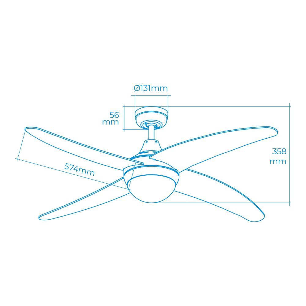 Ventilador De Techo Modelo Caspio. Color Blanco. Potencia: 60W Aspas: Ø132Cm 3 Velocidades. Con Mando A Distancia. Caudal De Aire: 7218M³/H Ac-220-240V 50Hz Con Luz (2Xe27 Max. 40W Max. 10,7Cm No Incluidas) 4 Aspas Edm