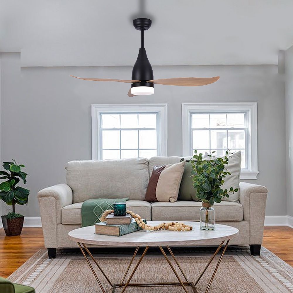 Ventilador De Techo De Led 112Cm Dc 15W + Luz 18W 2.190Lm 3.000K- 4000K-5.000K, 3Cct, Mod. Kattegat Edm. 6 Velocidades, Cuerpo Color Negro Y Palas De Madera. Con Mando A Distáncia, Pantalla De Lámpara Fabricado En Material Acrílico. 45Db