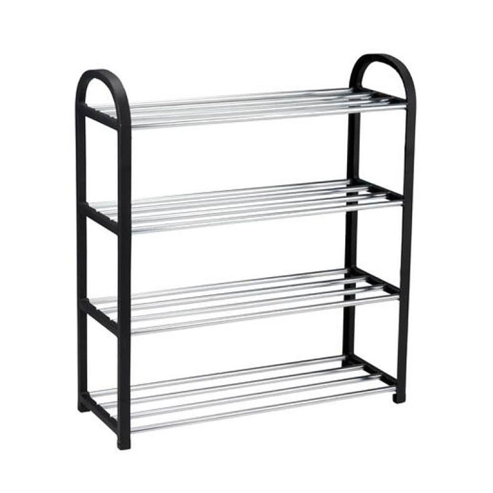 Zapatero De 4 Baldas, Negro Y Aluminio, 50 X 18.5 X 57 Cm